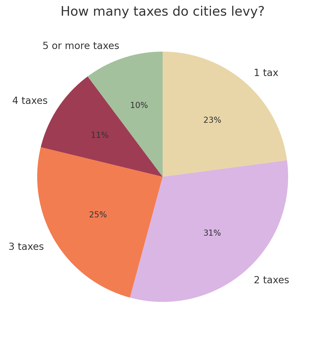There are more than 10 different sources of tax revenue that our cities can tap into, but in practice, what is the number of taxes levied by our cities? Let us look at the data from 2021-22.